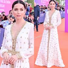 Saab's design aesthetic is defined by opulent, ultra-feminine, and romantic haute couture that blends Middle Eastern glamour with modern Western elegance, focusing on flattering the female silhouette through intricate embroidery, delicate beadwork, luxurious fabrics like silk and lace, and sweeping, dramatic gowns.