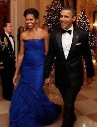 Ji-young Yoo wore a two-toned blue Carolina Herrera taffeta ballgown with a navy blue full skirt (with pockets!) and a dusty blue strapless bodice with a plunging, ruched front, accessorized with a wide black fabric belt that trailed down the front of the skirt. She accessorized with a striking diamond pendant necklace. It was a beautiful dress, if a bit boring.