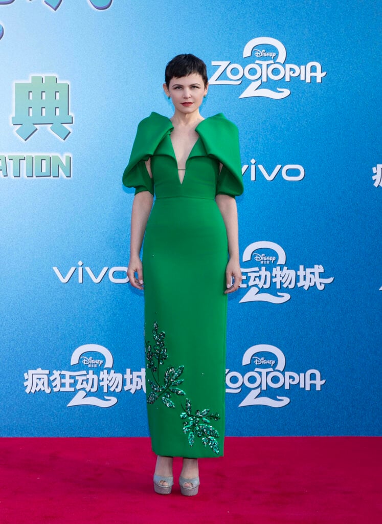 Wunmi Mosaku wore a spangled jade green cold-shoulder Vuitton gown with an asymmetrical neckline and long sleeves. I loved everything about the gown except the heavy, thick look of the fabric, which seemed very noticeable in the shoulder strap at the bottom of the shoulder cut-outs. But the overall lines were lovely and the color was perfect for her.